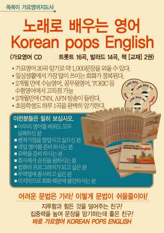 모르는 노래를 영어로 부른다는 것은 무리다 한때 오성식 팝스 잉글리쉬가 유행을 했던 적이 있었다 팝송의 대부분이 올드팝으로 많은 사람들이 즐겨 불렀던 외국 노래였지만 팝송 노래자체를 모르면 노래도 배워야 하고 영어도 배워야 하는 이중 부담이 생기기 때문에 영어실력 향상에 별 도움이 안되었다.